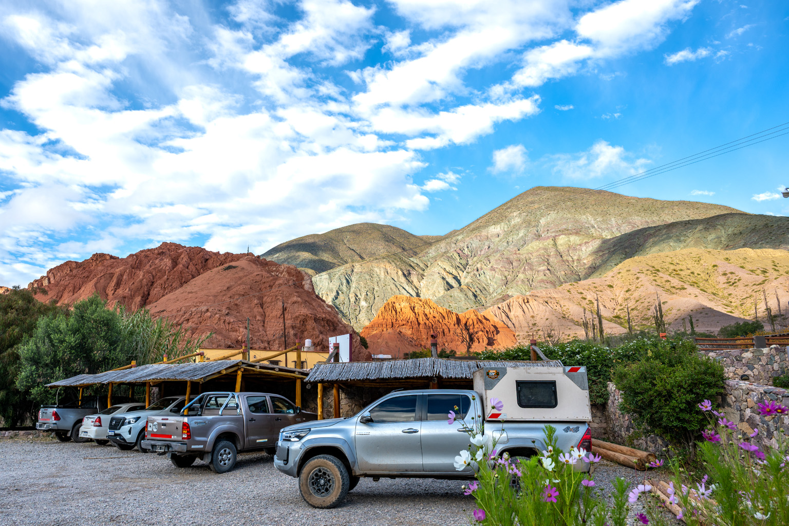 Dann ging es weiter über einen langen, kurvenreichen Höhenpass auf 4200m nach Purmamarca, wo wir kurz vor Dunkelheit dann eintrafen und den ersten Fahrzeug-Reisetag irgendwie verarbeiteten.