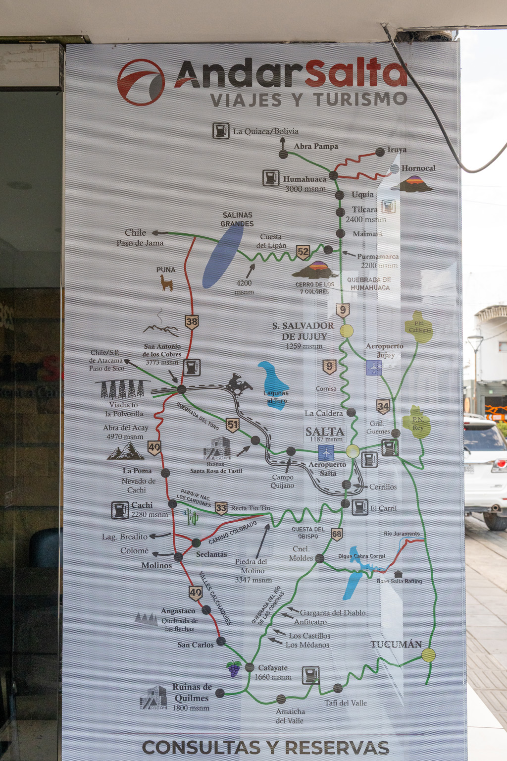 Um es mehr oder weniger abzukürzen: Ausgangspunkt war Salta. Von hier fuhren wir verschiedene Orte an, an denen wir übernachteten und zurückkehrten, um andere Orte zu erkunden.