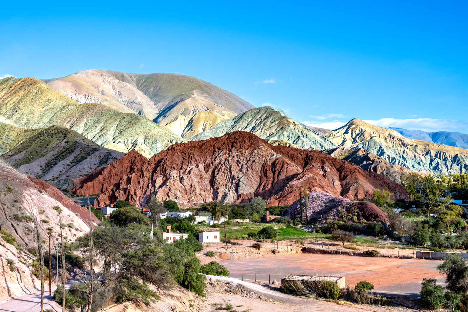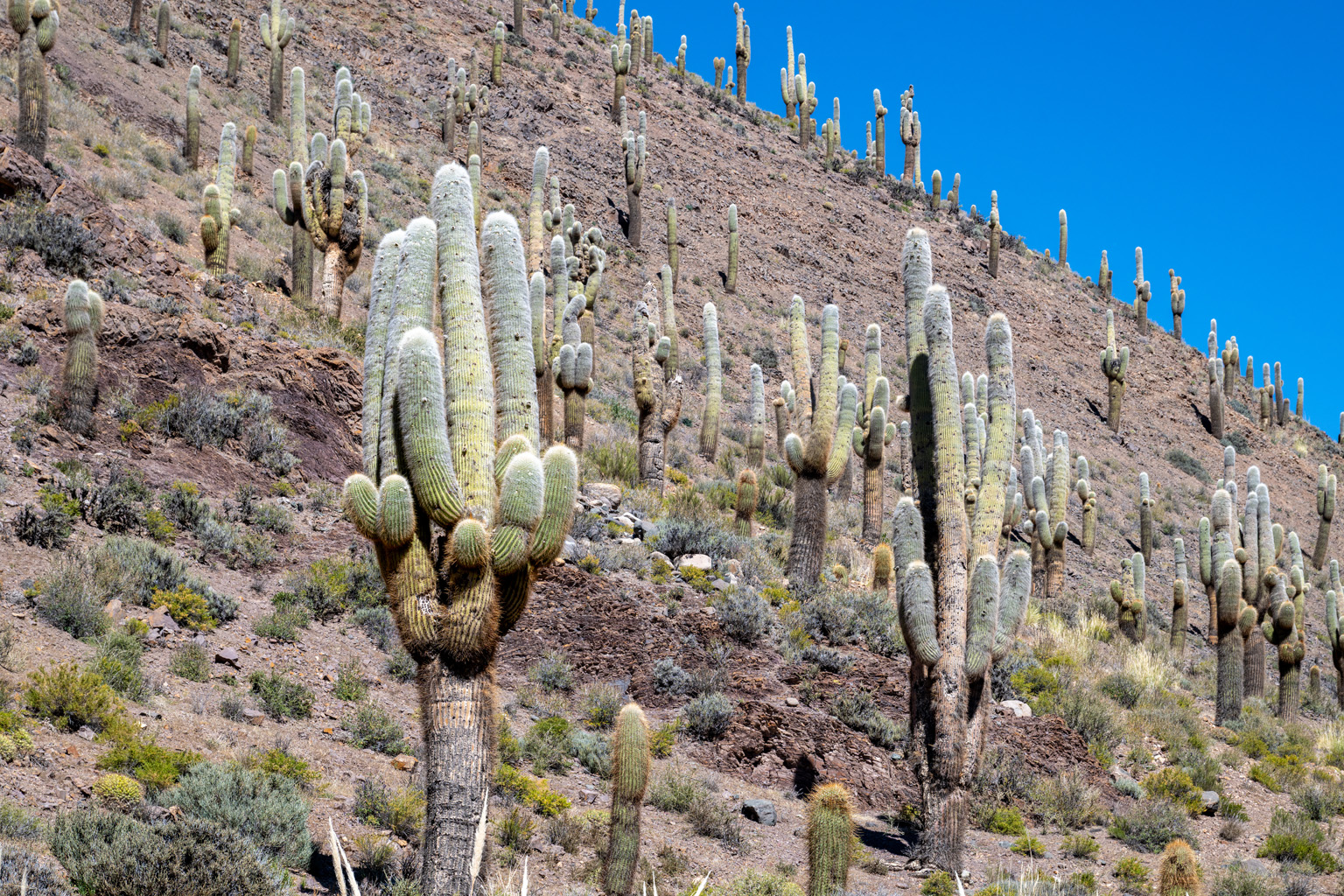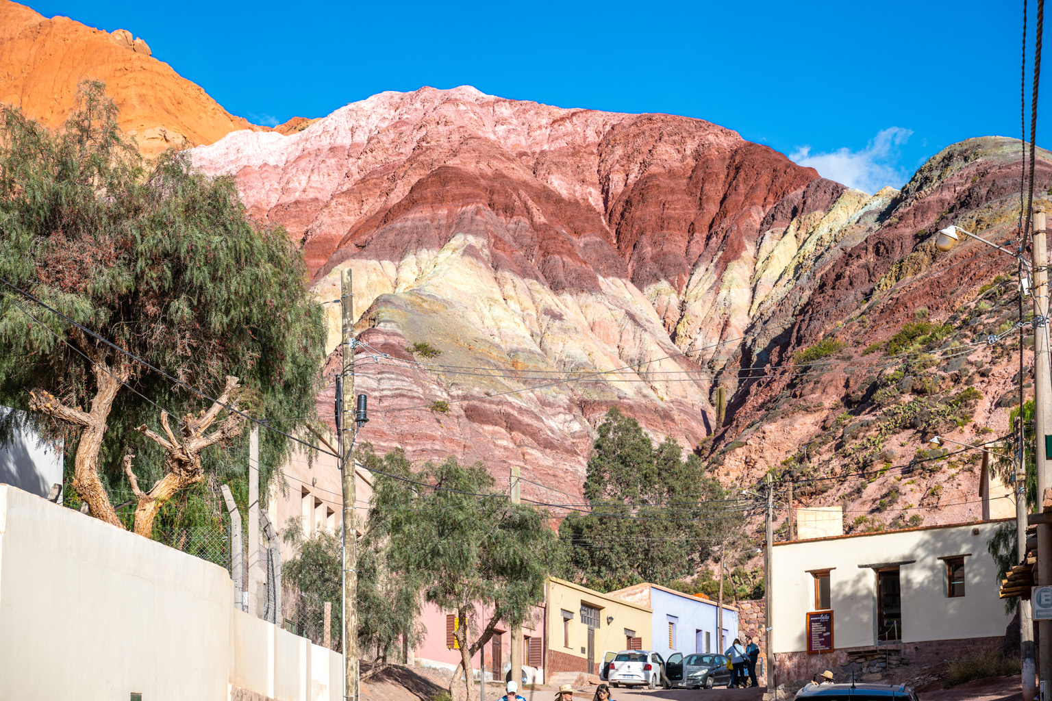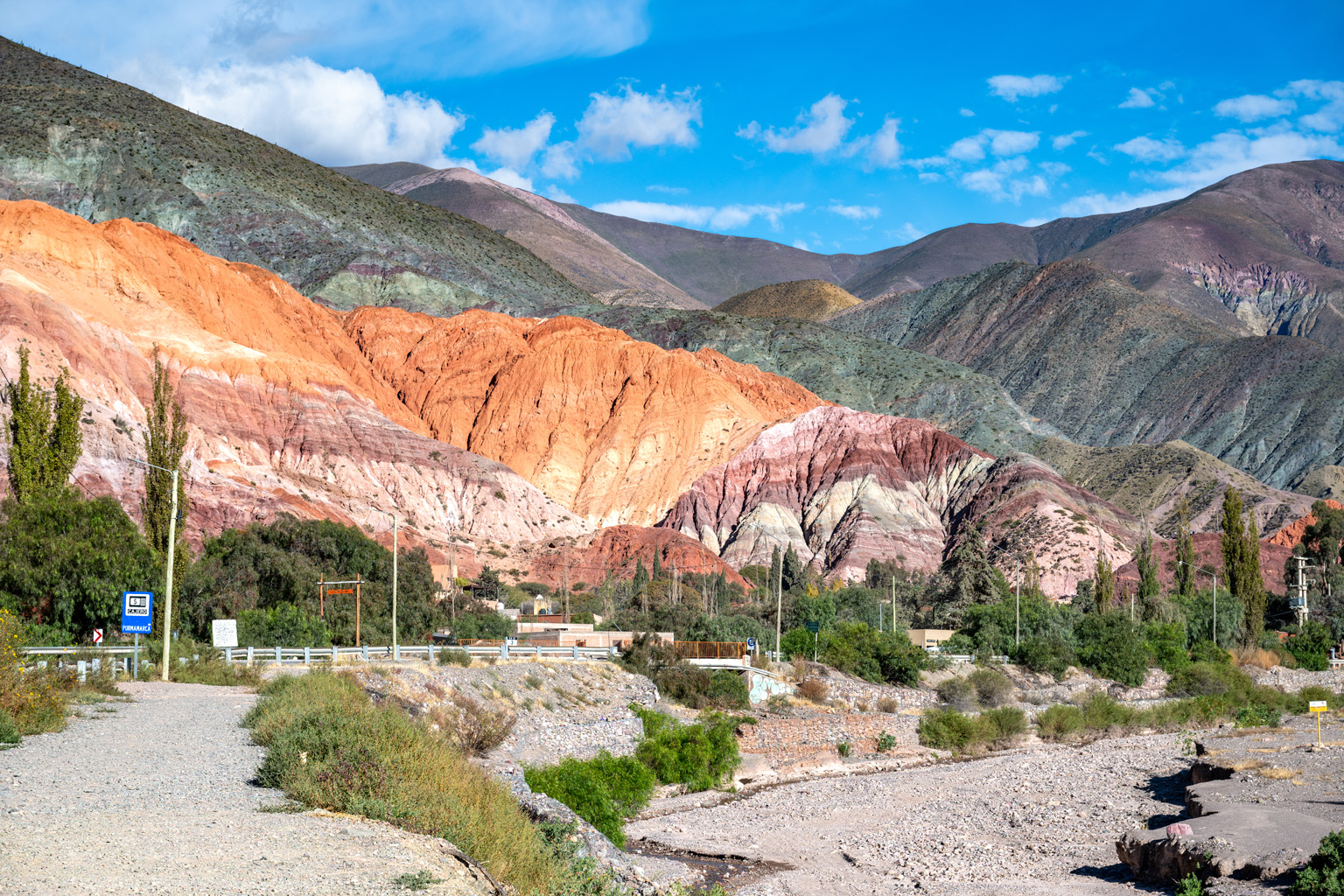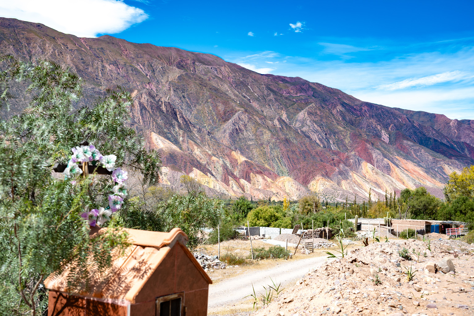 Wir hatten zu wenig Zeit und waren auch abends zu spät eingetroffen, denn man kann um die Berge wandern und hat dann die Morgen- oder Abendsonne, die die Berge so strahlen lässt. So aber reichten mir die Bilder hier aus Purmamarca und wir fuhren weiter in den Norden, nach Humahuaca, wo noch bizarrere Berge zu sehen wären. Allein schon die Strecke dorthin – und danach wieder zurück und über die andere RN, der RN9, nach Salta, ist sich so sehr ins Gedächtnis einbrennend.